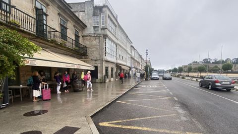 Mientras no llegue esa marquesina, el toldo del restaurante y la cafetería del Pazo de Mendoza seguirá haciendo de refugio improvisado para los usuarios. Y la parada, de símbolo involuntario de una dejadez urbana que contrasta con la imagen cuidada que se quiere proyectar al visitante. Una postal incompleta donde el autobús para, pero la infraestructura no llega.