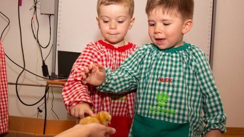 Os nenos recibiron con asombro a eclosión dos ovos de Galiña de Mos