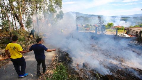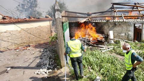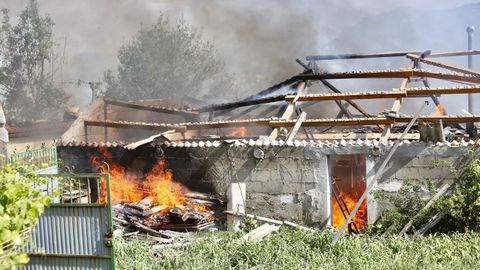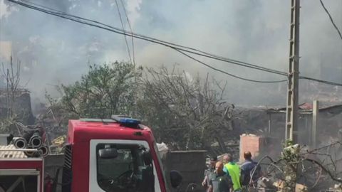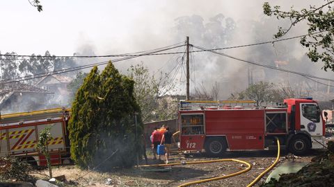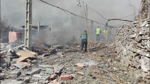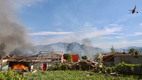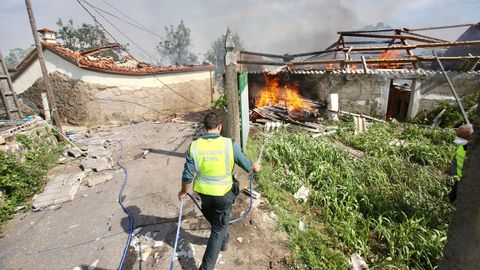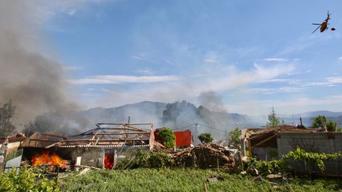 Las consecuencias de la deflagración en la zona son múltiples. El fuego se ha extendido a las casas de los alrededores, todos los vecinos están en la calle con mangueras colaborando en la lucha contra el fuego. Las llamas han alcanzado también el monte y los servicios de emergencia se afanan en las tareas de extinción. Los daños en las casas son múltiples, la onda expansiva ha derribado puertas y ventanas.