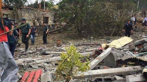 «Estaba sentado en casa en el salón y la primera explosión me lanzó contra la televisión», explica uno de los afectados del barrio tudense.«Me dejó aturdido, luego me acordé de mi hija pequeña, estaba en la cocina, nos abrazamos. Luego hubo dos explosiones más y después salimos de casa para ver a los vecinos, a uno lo tuvimos que ayudar a salir de casa. Hay dos casas deshechas por completo», explica Marco Antonio Estévez.