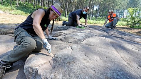 La singularidad de este proyecto, fruto de la colaboración entre la comunidad de montes, el Concello de Tui y la Diputación de Pontevedra, es que no es habitual encontrar ejemplos de todas las épocas en un mismo recinto. «Temos pedras dende a Prehistoria á Idade e Bronce e o Medievo. Son gravados feitos dende hai 6.000 anos e en distintos momentos, polo que temos figuras xeométricas, naturalistas e medievais», destaca Benito Vilas. Esta particularidad será especialmente interesante para el proyecto, que pretende poner en valor este legado, facilitando su conocimiento y haciéndolo accesible a todos. De hecho, debería haber comenzado en marzo con una visita de escolares del municipio para que vieran la zona antes de comenzar los trabajos para entender después la intervención pero el estado de alarma obligó a parar la limpieza del espacio la misma semana que arrancó.