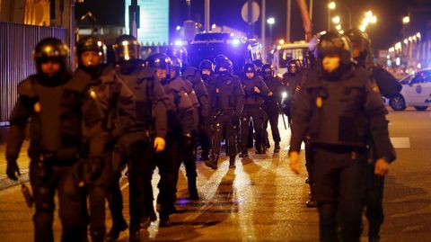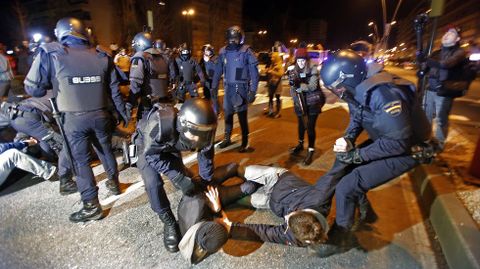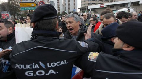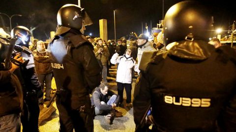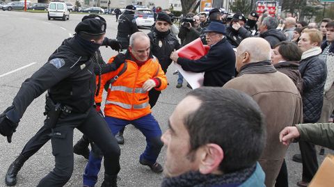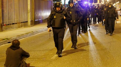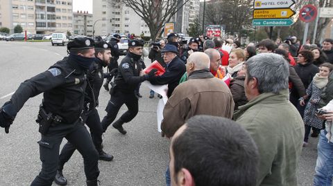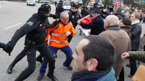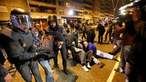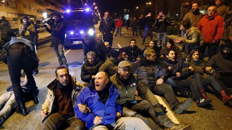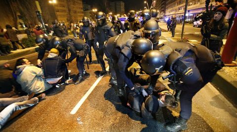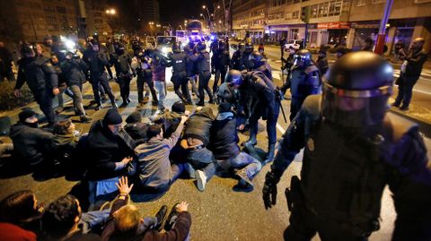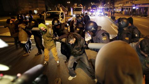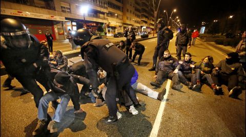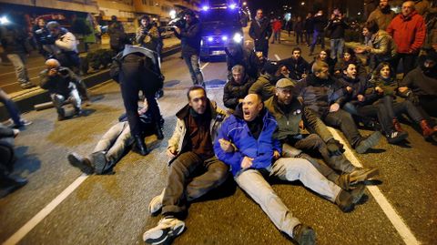 Un grupo de vecinos se ha encadenado en la avenida Castelao, donde la policía ha cargado contra algunos de los manifestantes
