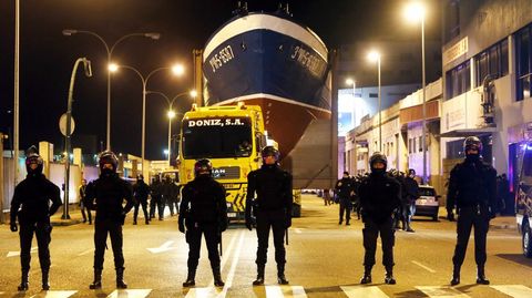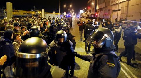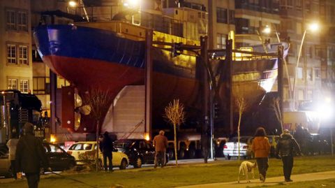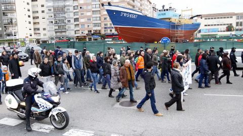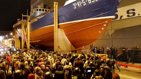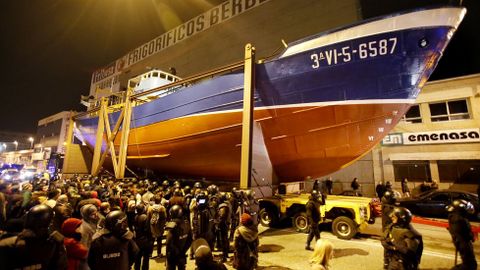 19 feb 2015 . Actualizado a las 02:44 h.Al filo de las nueve de la noche unas 150 personas iniciaron las concentraciones en la avenida de Beiramar para protestar por el traslado del pesquero «Bernardo Alfageme» a una rotonda de Coia, un proyecto del alcalde vigués contestado por entidades sociales, ciudadanas y la totalidad de los partidos políticos, salvo el PSOE. Para llevar a cabo el traslado, que se inició a las 12 de la noche, el Concello preparó un importante despliegue con más de 200 policías 130 municipales y un centenar de Antidisturbios.