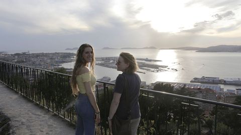 El descenso por los balcones de Vigo continúa y llega a O Castro. Una atalaya natural en medio del hormigón. Lo transitan gente más joven, ya que no hace falta coche para llegar y disfrutar de este reducto verde. Como Diego y Sara, de 20 años, que están enamorados de las vistas que regala cuando se empieza a poner el sol. Otros vienen desde más lejos: Ana y Lourdes, madre e hija, de Valencia con familia en Chantada, están aquí por recomendación del chico del hotel. Sus móviles echan humo con las ráfagas de fotos que disparan. «Subir cuesta un poco pero las vistas merecen la pena». O Alejandro y Nerea, que llegaron desde Ourense porque ella vino de pequeña y quería enseñárselo a él, que posa su brazo en los hombros de su pareja con cariño.