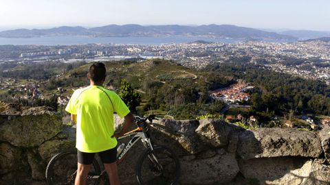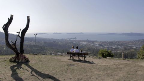 En la película La mirada de Ulises (1995) un cineasta griego emprende un arriesgado viaje por toda la península Balcánica en plena guerra yugoslava persiguiendo unas cintas desaparecidas de las primeras filmaciones de los hermanos Manakis. En esas imágenes busca recuperar la mirada perdida de la inocencia, de lo puro y sincero que vive en las primeras veces y empapa la infancia, pero que se va apagando al hacerse mayor. Algo parecido es lo que buscan Camilo y Norma, pareja de mediana edad, en el Monte Alba. Se quejan de no ser capaces de definir con vocablos aquello que solo se siente, «precisamente vienes aquí para no pensar con palabras», dicen. Les encantan los miradores, los conocen todos y aseguran que ese es el mejor de Vigo. «Es impresionante, estás viendo cosas familiares y en cambio te sorprende». Llevan muchos años viviendo en la ciudad olívica, y se nota, porque pasados unos minutos sí se les viene una palabra a la mente: quemado. Les cuesta decirlo, como si al permitir que se escape de una garganta cobrase vida aquel difícil recuerdo de los incendios de hace dos años. Al rato, se escuchan jadeos y el arañar de ruedas de bicicleta sobre la tierra. Aparece Adrián Roibó, que salió a las 17.30 horas del centro y no sabe ni qué hora es. Da igual, está feliz, sudando y feliz. Con sonrisa y brillo en la mirada observa las vistas del punto más alto posible desde el que contemplar Vigo, que reducida aquí a una pequeña postal desde el puente de Rande hasta las islas Cíes parece de juguete. «Es un paraíso, debería venir todo el mundo, quien pueda en la bici, aunque tampoco lo recomiendo mucho», bromea mientras recupera el oxígeno.