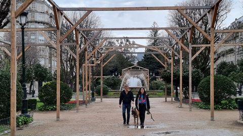 La decoración de la araucaria y el armazón del mercadillo siguen en la alameda a diez días de marzo, así como avisos de Vitrasa por anulación de paradas