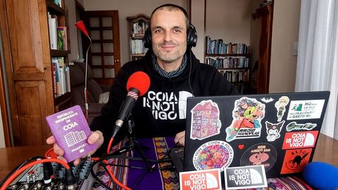 El aficionado, que es profesor de FP en el ciclo de Integración Social en el Instituto San José de A Guía, explica que su interés por las ondas y la comunicación viene de antiguo y ha hecho sus pinitos colaborando con la radio comunitaria y libre Radio Pimienta, pero hace tres años organizaron en su centro un curso de formación en radio educativa al que se apuntó «e despois lle pedín a os reis magos uns micros, unha mesiña de mesturas e uns auriculares, e como me portei ben, mos trouxeron», argumenta. «É un mundo que sempre me chamou a atención, e aproveitei estes tempos do covid nos que era difícil estar con xente. A radio era unha escusa para falar sosegado», reconoce.