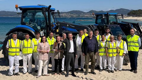 En total, trabajarán 14 personas, 12 en turno de mañana y 2 en turno de tarde, distribuidas en seis equipos que actuarán por zonas. El servicio cuenta con un despliegue técnico que incluye dos grandes tractores equipados con limpiaplayas mecánicas para los arenales más extensos —Samil, O Vao y Canido—, así como tractores de menor tamaño para playas medianas como A Fonte y Fontaíña.