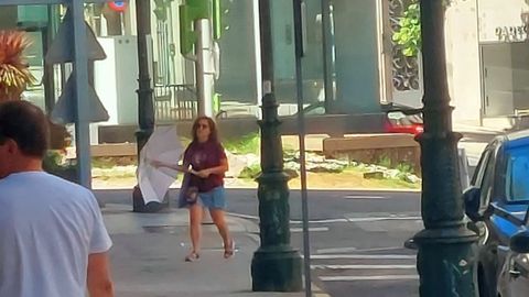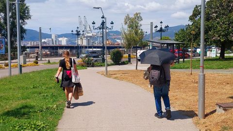 En la esquina de Urzaiz con Lepanto, una señora abre el paraguas para cruzar y lo pliega nada más llegar al otro lado: «Es que es insoportable y no hay dónde protegerse durante el camino», lamenta. En la Porta do Sol, una familia de turistas madrileños se cubren del ídem con sus paraguas que habían traído para la lluvia: «Esta plaza se la habéis copiado muy bien a Madrid, ¿eh?, ni un solo árbol, ni una miserable sombra», critica la líder de la manada mesetaria.