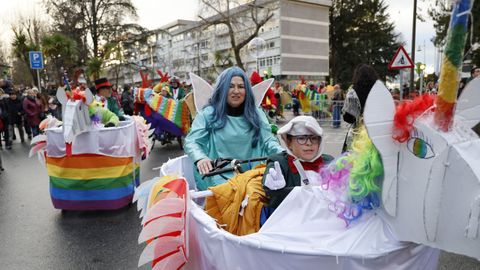 Gadis, Abanca, Alcampo o Fe Seguros fueron algunas de las marcas comerciales que decidieron sumar carrozas al desfile. Entre ellas se situaron los grupos de animación contratados este año por el Concello. Allí estuvieron los animales gigantes de Fantasía, de Sde Group; A fábrica de luz, de Imaxineria; O verme lambón máxico, de J. C. González Barreiro; y O dragón gardán dos soños, de Barafunda. Todo un alarde de imaginación.