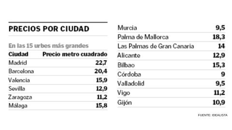 Un inquilino debe pagar en la ciudad más de 11 euros por metros cuadrado en la ciudad, lo que equivaldría, de media, a un piso de unos 63. Esta cifra coloca a Vigo en el mismo nivel de precios de Zaragoza y la pone por encima de ciudades más grandes como Murcia, Córdoba, Valladolid según cifras de Idealista. La ciudad también es la urbe gallega con mayor precio por metro cuadrado, aunque solo registra diez céntimos más que A Coruña, que, a su vez, según las cifras del Observatorio da Vivenda de Galicia, es la ciudad con un precio medio total más alto con 731 euros al mes. Los datos de la institución de la Xunta se calculan con el importe de las fianzas depositadas por los caseros.