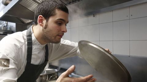 A la infancia vuelve también por flores el chef Dani Guzmán, de Nova Restaurante, con un aroma vinculado a su cocina de raíces. Elige la lavanda, que lo hace viajar, años atrás, a la finca de la aldea. Es evocadora: «Abrías la ventana y te inundaba el olor de la lavanda en flor». Dani la escoge «por su estética, por su aroma, por cómo funciona en los platos y por la fuerza con que resiste al invierno ourensano».