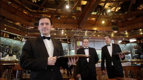 Abierto desde el año 1951 en el centro de Ferrol -primero en la calle María y después en la plaza de España, cuando todavía era un descampado de tierra- el café Avenida está prácticamente intacto. Suelo, rótulo y hasta mobiliario sobreviven al paso del tiempo con «un mantenimiento brutal» y mucho cariño. Pero hay algo que sí han renovado hace muy poco: el look de sus camareros. Eran los típicos de camisa blanca y chaleco, pero ya no: ahora todos lucen una moderna camisa negra. «Es la única manera de sobrevivir a una mañana de chocolate, porque el negro es más sufrido», cuenta el propietario, Emilio Vázquez Rey. Él es la tercera generación al frente de este local, que ya pilotó su padre y antes su abuelo. Y es que el chocolate y los churros son productos estrella en el Avenida. Emilio tiene muy claro cómo actúa un buen camarero: «su comportamiento depende del cliente, que es el que hace que el local sea el que es. Pero lo realmente importante son los detalles», explica. ¿Y qué detalles son esos? Los de un buen observador. «Si ves a un cliente solo, le ofreces un periódico. Si ves a alguien dudoso le dice la variedad de leche o azúcar que tienes, le haces sugerencias... O, por ejemplo, si está acabando los churros y aún le queda chocolate, le ofreces más», indica. En definitiva un buen camarero tiene que ser cercano, aunque sin abusar de la confianza del cliente. Pero hay más cosas que distinguen a un buen profesional, incluso con la persiana echada. Emilio dice que hay que hacer los turnos completos y ser muy puntual a la hora de abrir. «Trabajamos más con la cabeza que con las manos. Es ver a la gente y estar pendiente de lo que necesita, que te tengan que llamar lo menos posible». Por eso mismo ya hacen muchos servicios de memoria. Esta gente se sabe lo que quieren sus clientes habituales: «es mucho mejor para ellos, que no tienen que explicarte todos los días lo mismo, pero también para nosotros, que ganamos tiempo y nos ahorramos trabajo inútil». Por saber, se saben hasta la posición que ocupa cada uno «Somos animales de costumbres. El que viene siempre se sienta en la misma mesa o se pone en el mismo lado de la barra», apunta Emilio, que dice que en su local se reúne hasta alguna comunidad de vecinos. «Tenemos un salón que sirve también como espacio para exposiciones de pintores aficionados», señala. Pero en el Avenida tienen otro secreto. Y es que siempre, siempre, te ponen algo con la consumición. Desde patatas y mini bollitos preñaos hechos por ellos mismos hasta cazuelitas de guiso. Ellos sí que saben.