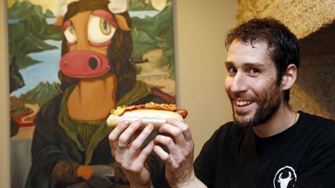 El secreto de los perritos que sirven en A Vaca, en Santiago, está en la salchicha: «Es artesana, no es la típica Frankfurt que uno se puede comer en casa. Está hecha con ternera gallega. Como no puede ser cien por cien ternera porque sería muy seca, la salchicha lleva un 30% de cerdo para darle jugosidad», explica Diego Fernández, dueño, junto a su socio Damián Rama, de este establecimiento de Rúa de Troia. Su perrito es el más internacional. Diego y Damián, los cocineros, son argentinos. Las salchichas que sirven las prepara una chica alemana que lleva 30 años embuchando carne al estilo germano. Y el pan es gallego, cómo no. Tienen tres tipos de perritos: el clásico, el «A Vaca», con cebolla crujiente y salsa chédar, y «El Perro», un mega hot dog de 50 centímetros. Sí, medio metro de carne que se sirve directamente en pan de baguete. «Hay gente que viene exclusivamente a comer el perrito grande».