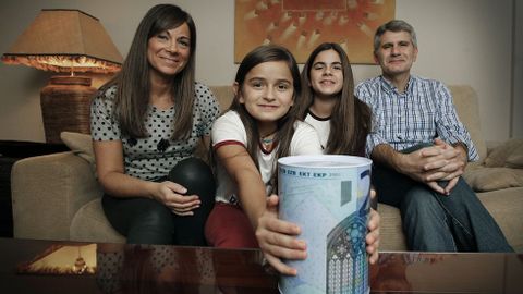¿De cuánto estamos hablando? «Pues a lo tonto este año juntamos 1.600 euros y es un dinero que disfrutamos en las vacaciones». Cuando regresan de viaje compran otra hucha grande y a empezar. Este es el tercer año consecutivo que aplican la fórmula por la «emoción» que genera en sus hijas. «Ellas saben que nos vamos a ir de vacaciones, pero la hucha no deja de ser un condicionante que las hace peligrar:?¡como no la llenemos no nos vamos!, así que por si acaso van metiendo», bromea Vanessa. Eso sí, ella no se tiene por el colmo del ahorro, y reconoce que es la que menos aporta. «En casa estamos divididos, mi hija mayor y yo somos de gastar, y ellos dos, de guardar», se ríe. Por lo de pronto el bote les ha ayudado para irse a Londres y a Valencia y todo apunta que este año ganarán otro destino. Javier se encarga de recordárselo: «¡Niñas, guardo en la hucha, a ver vosotras!». Poquito a poco han arañado una cantidad que en verano se convierte en toda una fortuna. El dinero les da la felicidad de disfrutarlo.