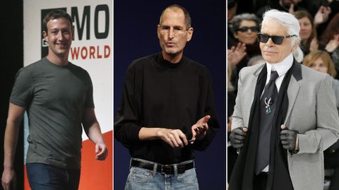 Este chaval -porque todavía lo es- causó un revuelo mundial cuando se le ocurrió subir al perfil la foto de su armario. «Primer día de regreso tras el permiso de paternidad. ¿Qué ropa me pongo?», comentó en su muro bajo la famosa imagen en la que solo se ven perchas con camisetas y sudaderas idénticas (a la izquierda). Pero Mark no es el primero, y apostamos a que no será el último. Steve Jobs se puso a diario el mismo jersey negro con vaqueros durante los últimos años de su vida. Un jersey que le pidió al diseñador japonés Issey Miyake, que le mandó alrededor de un centenar. Tantos que el mismo Jobs dijo que serían suficientes para vestirse el resto de su vida. Y lo cumplió.