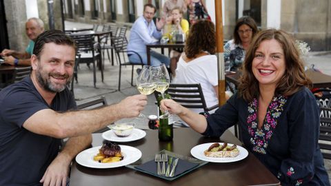 Con una terraza muy atractiva y un comedor para medio centenar de comensales, el lugar se prestaba para trabajar a dos velocidades: por un lado, el servicio a la carta, con productos de mercado innovadores y tratados originalmente; y por otro, un menú del día a 11,90 euros que mantuviese el espíritu de la cocina y siempre con un objetivo: no aburrir al que quiera hacer de este restaurante su segunda casa. «Siempre variamos para no cansar, porque consideramos que un cliente que viene de lunes a viernes es muy valioso». Los trabajadores de una empresa y varios profesores universitarios son algunos de los fijos, fidelizados con una tarjeta con la que obtienen un menú gratuito de cada diez, sin ser necesariamente consecutivos. A los comensales regulares se suman los turistas. «El menú del día -explica Fernández- nos permite en muchas ocasiones dinamizar los productos frescos y mercancías pensadas para la carta, aunque normalmente nos preocupamos específicamente de tener carnes y pescados que llegan a las lonjas de A Coruña o Ribeira con buenos precios. Cuando entran en nuestro rango, sin bajar la calidad, nos avisan y compramos». Esa filosofía les permite en ocasiones sorprender con un lenguado, un sargo o unos rapantes «que se pasan del presupuesto, pero nuestro objetivo es pensar en el equilibrio a lo largo de la semana».