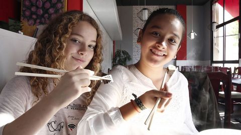 ¡Olvídense! Pues empezamos bien... ¡Necesita mucha práctica! Eso sí, el que aprende a utilizarlos dice que no hay nada mejor. Los palillos chinos han dejado de ser algo exótico en los restaurantes de comida asiática. Esos que te ponían antes de pedir, por favor, un tenedor y un cuchillo. Cada vez son más las personas que los utilizan y no de cualquier manera. Con estilo. Hay varias fórmulas que muestran la mejor manera de cogerlos. Todas son válidas, pero lo mejor es practicar y practicar. Al margen de lo puramente estético, el uso de los palillos tiene mucho de saludable. Marisol (Xiao Hong) regenta en Ourense el restaurante Gran Muralla. Afirma de forma contundente: «Comer con palillos es mucho más saludable y la comida sabe mejor». Explica que este método hace que se mastique más la comida, que se saboree cada bocado y, como consecuencia, que las digestiones sean mejores. Pero, además, es ideal para las personas con ansiedad. Aquellas que comen a cien por puro nervio, porque al meter menos alimento en la boca, y más despacio, la señal de hartazgo llega antes al cerebro. En resumen, que uno se siente lleno antes. Y deja de comer. En este restaurante, los comensales reciben los palillos dentro de un envoltorio, que explica la forma de utilizarlos en tres pasos. En inglés, pero con dibujos. En Gran Muralla son muchas las personas que los utilizan y que no son orientales. Ourensanos que se han pasado al palillo a la hora de comer no solo menús asiáticos, sino aquellos que son similares y que lo aceptan sin problema. En el mismo restaurante se reunieron hace pocas semanas unos 40 ourensanos que practican Tai Chi para compartir una cena. Y todos, con palillos chinos. «Todos los piden, ya no se imaginan comiendo esta comida de otra manera. Solo es cuestión de familiarizarse», afirma Marisol.