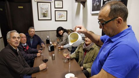 Lo de compartir surgió en Ourense sin querer. No es algo que se hubiera buscado, sino que se fue consolidando de forma natural. Casi sin pretenderlo. Y es que al fondo del bar Orellas de la praza do Ferro, en Ourense, hay una mesa de reglamento con capacidad para ocho personas instaladas cómodamente. Tampoco es que ocupen demasiado las raciones que salen de la cocina, sobre todo orella y rabo de cerdo, por lo que espacio hay de sobra, que la vajilla no pasa de platos pequeños para las raciones y palillos, aparte de la cristalería. Como el local es de los que están frecuentemente llenos, aprovechando la versatilidad de las mesas para cuatro y que no siempre había grupos de ocho para llenar la más grande, pronto se convirtió la del fondo en la mesa social, en la que se puede instalar una pareja en una esquina y otras cuatro personas al otro lado. Por ejemplo. Todo de forma natural, civilizada, sin quejas ni malas caras apreciables, como constata el tabernero, Francisco Ovejero. «Cómo será que habitualmente tenemos arrimada otra mesa, para hacerla crecer hasta las once plazas, aunque casi siempre se ocupa con grupos diferentes, lo cual da idea del ambiente. Ni un problema desde el año 2003, cuando nos vinimos para aquí», dice Paco, que mantiene una clientela de lo más heterogénea, que igual le pide una copa de buen vino como una caña de 1906 (bien tirada la cerveza del barril, por cierto), o bien reclama que le traigan una taza para tomar el vino.