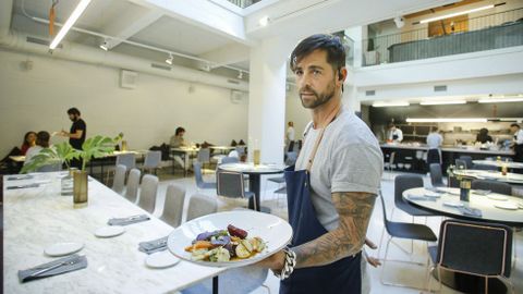 Si hablamos de parrilla, hay que hacerlo también de un nuevo restaurante que es ya uno de los más cotizados en lo que a listas de espera se refiere en A Coruña. Y es que en la Herculina, todo un portento del diseño minimalista, no entienden la cocina sin que pase por las brasas. «Todos los platos que tenemos se hacen de una forma u otra en la parrilla. Hacemos allí todas las cocciones. Lo único que no pasa por ella es la fideuá», dice su encargado, Yago Cabezas. El salteado de verduras que nos muestran en la foto es buena prueba de ello. «Se ponen todas en la parrilla para asarlas, y después se pelan y se les quita la carne para que salgan al natural, salteadas con un aceite de humo que hacemos aquí», explica. Las berenjenas son uno de los referentes del local: «Las quemamos en las brasas, las pelamos y luego se preparan y se cocinan de otra manera, pero para ello pasan primero por la parrilla», cuenta el responsable, que explica que hasta el marisco tiene su sitio en la rejilla: «Los mejillones y las navajas los abrimos allí, con el humo».