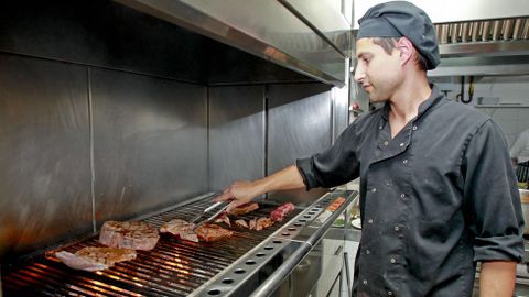«Abrimos en febrero de hace dos años. Tenemos todo tipo de carnes. Nuestro jefe tenía experiencia y nos la fue transmitiendo al resto. A le gente le gusta mucho comer a la parrilla», afirma María José Falcón, trabajadora del restaurante. La especialidad de Aldea da Grella es el pollo: «El que le da una oportunidad y lo prueba, repite. Triunfa siempre», subraya. Aunque la parrilla se asocia con comida de invierno, desde Aldea da Grella explican que es en verano cuando mejor funciona. «A lo mejor es porque hay más gente de fuera, de vacaciones. Ahora en invierno la gente no sale tanto y enseguida se mete en la casa. Además, la parrilla la tenemos en la cocina y no llega el calor de las brasas al salón. Así que en verano no es un problema», dice. Usan carbón vegetal.