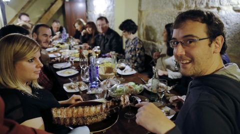 La apuesta por la cocina con brasas tiene una motivación histórica en A Taberna da Feira. El local, que siempre se destinó a restauración, está ubicado en la zona de Salgueiriños, justo enfrente de donde se alzaba el mercado de ganados de Santiago que inauguró Franco en 1971, pero la familia propietaria alquiló el negocio durante años y se encontró con él de vuelta en plena crisis. Reabrió en el 2012 y era obligado ofrecer algo distinto a la oferta que se abría paso en el centro de la ciudad, enfocada sobre todo al turismo. «A los gallegos les gusta siempre la brasa, de ahí nuestra apuesta», explica Luis Sevilla, que ha sido junto a Óscar Corral el encargado de revivir este histórico espacio, ahora ya sin la feria enfrente pero con el respaldo del grupo hostelero Los Robles.