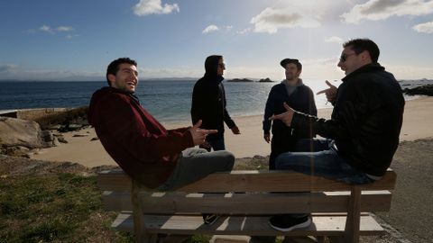 Si hay alguien que defiende su banco, ese es Antón. En la foto (con capucha) posa con los hermanos Héctor y Dani Alba y con el DJ Antonio Cayón, sus compañeros de grupo de hip-hop. «Se llama 8 Ferrados, es una coña por 8 Millas», asegura. Y claro, como buenos raperos, al banco van a rapear. «Cuando vi la primera noticia de los bancos pensé que esto se estaba quedando en algo superficial, porque lo del paisaje es algo que solo compartes con una o dos personas. Nuestro banco significa algo más», asegura Antón, que dice que tanto él como sus colegas lo entienden «como algo artístico. Lo importante es lo que creamos. No somos impresionistas para darle tanta importancia al matiz, a la luz, a los colores... Para nosotros no es importante solo el paisaje, que es efímero. Lo que importa son los versos que salen de ahí».