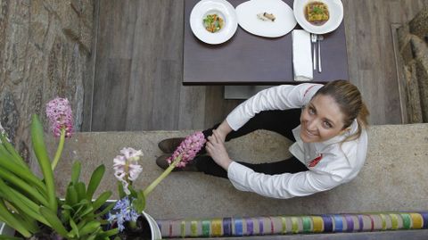 «Le debo muchísimo, porque fue un verdadero bum, el restaurante se llenó y muchos clientes empezaron a volver para probar más cosas del menú gastronómico», confiesa la chef compostelana. Cuesta 15 euros (sin pan, bebida y café) y se compone de dos entrantes a elegir, carne o pescado y un postre fijo, un reto diario en el que vuelca toda su creatividad para que su experiencia y la del cliente sea satisfactoria: «Es un menú rápido y dinámico que te obliga a estar muy en contacto con el mercado y la lonja, y muchos de los vegetales son de mi huerto», explica. La preocupación por el coste es inevitable, pero su pasión es la misma «porque solo sé cocinar de una manera», por eso no le importa que se trate de un menú gastronómico de catorce platos que algo del día.