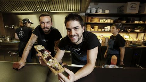 Pero en este local en el que no hay mesas, solo una gran barra abierta a la cocina, se pueden degustar más platos «contaminados» -así es su lema- sin arruinarte en el intento. Entre ellos, las empanadillas de choco, «que están fantásticas» y que Domínguez propone combinar con las endivias o un cuenco de ramen, un plato «opulento y muy rico», con fideo y carne, «que se puede degustar solo y que a mí, que como bastante, me llena». Para los carnívoros, el chef recomienda la costilla o el steek tartar con tuétano, «dos platos muy contundentes», y que siguen la misma línea: sabrosos, diferentes y ajustados al presupuesto. «Al final la clave está en jugar, si escoges bien te saldrá bien de precio y puedes comer o cenar por 15 euros. En Arallo siempre estamos dispuestos a ayudar a elegir las mejores opciones para que todo el mundo pueda probar sabores diferentes», añade Domínguez.