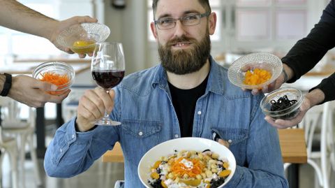 Lo dice Rubén González, chef de El Cafetín, el local pontevedrés que arrasa en los concursos de tapas y en originalidad, ya que cada día renueva su menú del día. ¿Estás preparado? Porque ya te avisamos de que no lo dice por decir, y aquí tienes varios ejemplos: Ensalada templada de magret de pato con piña y San Simón; mixta de atún y anchoas sobre brotes deluxe; de brotes tiernos con gamba y mejillones en vinagreta; de cuscús con salmón y vinagreta morada; de salmón relleno de brotes tiernos con anchoa y piña; de brotes con salpicón de salmón, gambas y pulpo; y de judías verdes con mejillones en vinagreta. Son solo algunos de los ejemplos más recientes que el chef ha servido en su gastroteca, situada en el centro de la Alameda de la ciudad del Lérez.