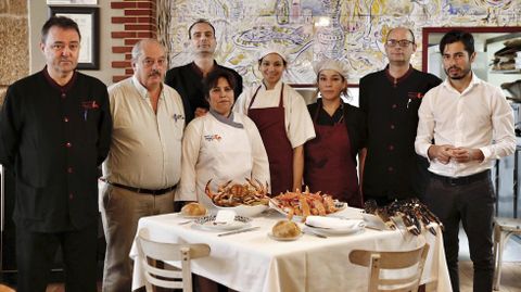 En la última década ha sido de lo más sonado el tirón de As Catedrais... y lo sigue siendo. Pero otro «trending topic» de A Mariña, y que ya existía antes de que dicha playa ribadense cobrase fama y solera internacional, es el arroz caldoso con bogavante que se prepara en Rinlo (Ribadeo), al lado del arenal. Así que estamos hablando de una delicatesen gastronómica en toda regla y que atrae a tantos y tantos comensales que ya hay reservas hechas para este verano. Si no quieres quedarte sin sitio, llama raudo y veloz a A Cofradía de Rinlo, uno de los locales de este pequeño pueblo marinero que lo ofrecen y desde el cual Gerardo Martínez Postigo (Rinlo-Ribadeo, 1975) nos cuenta que en el año de la Expo de Sevilla, en 1992, sus padres fueron de vacaciones a Lagos en Portugal y su madre se trajo en la «maleta» una receta de casa de unos amigos. Desconocía entonces el tremendo legado culinario que recibiría y que hoy es todo un imán de clientes en este local. En tierras portuguesas este arroz lo elaboraban, señala, «con zapateira e en vez de perexil utilizaban coandro, que é bastante máis forte. Ela empezou realmente a facelo con lagosta pero ía máis cara e había menos». La versión final fue con bogavante y tanto. tanto se consume ahí, explica, que les hacen falta ¡ocho mil kilos del marisco al año! «Unha animalada», señala. Me quitó el calificativo de la boca.