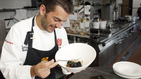 Los calamares en su tinta son un plato muy demandado y que este chef prepara con total esmero por ser un pescado que se consume con frecuencia y en cualquier época del año, y que está muy solicitado para cenas o picoteos cuando no se quiere atacar una carne o un pescado contundente. El calamar es un producto que suele abundar en las lonjas y que es fácil de encontrar por los cocineros. Además, los clientes no suelen preguntar por su frescura como ocurre con otros pescados, que si no son del día, el cliente prefiere no consumirlos. Al calamar no hay quien se le resista.