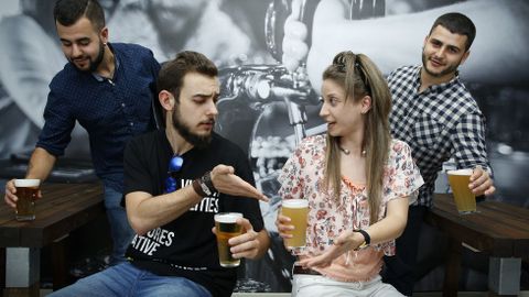 José Seijo reconoce que él no es muy fan de las claras: «En todo caso, prefiero el combinado que se comercializa ya preparado por parte de algunos conocidos fabricantes de cerveza». Pero Alberto Boquete sí que se toma una clara con gusto y departe sobre el tema con la también clarista Eva Vilar y con el más cervecero Iago Felipe (ambos en la foto). «Cuando aprieta la sed, sí que me tomo una clara. Dado que con el refresco de limón de Fanta se me hace un poco dulce de más, yo la prefiero con Casera de limón o con Kas de limón», afirma Boquete.
