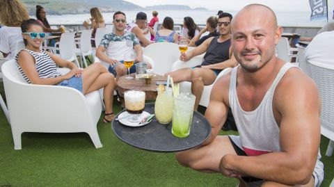 En Malpica, si hay algo que diferencia al chiringuito Area Chill Out son sus cócteles. Son de primera: «Aquí facemos unha coctelería moi elaborada, con cristalería para cada tipo de cóctel e vasos para cada batido, frapé e smoothie. Ata poñemos uha piña de cristal coa piña colada», indica Tono, que lleva el chiringuito junto a su hermana desde el verano pasado y posa de lo más sonriente en cuclillas bandeja en mano.