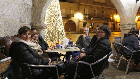 Muchas de las plazas importantes de los ayuntamientos gallegos, Ourense no es una excepción, cuentan con soportales. Son lugares ideales para, sin recluirse, refugiarse en días de lluvia y viento o, incluso, de sol extremo. Por eso son el enclave perfecto en el que montar una terraza. Tanto en la capital ourensana como en concellos como Ribadavia, entre otros, los bajos instalados en dichas plazas están ocupados por bares, cafeterías o restaurantes. Suelen ser lugares céntricos, por donde algunos pasan más de una vez al día ?sobre todo si los municipios son pequeños? y en donde siempre apetece tomarse un descanso y coger aire. Además, son buenos lugares para ver pasar a los vecinos o para disfrutar de las atracciones o de cualquier acontecimiento importante. En Navidad, por ejemplo, es la zona más bonita e iluminada de una villa. Porque todo pasa alrededor de la plaza. En la mayoría de las zonas, las piedras se encargan de evitar tomar las consumiciones atentos a si cae una lluvia imprevista y, además, en los últimos años se multiplican los aparatos que mitigan el frío.