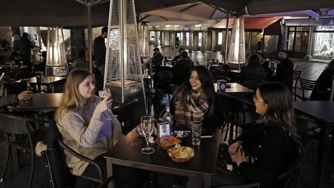 Al igual que la pandilla de Lucía, que escoge la terraza para evitar los agobios del interior, el grupo de Patricia también se decanta por estar al aire libre. «En nuestra pandilla los fumadores son mayoría y para que no tengan que andar entrando y saliendo del local nos quedamos todos fuera. Es un espacio acogedor, que dispone de mamparas para combatir el frío y se está muy bien. Así también controlamos quién entra y quién sale», dice con picardía esta lucense, que frecuenta el establecimiento todos los fines de semana. «Venimos todos los días a tomar el café de la tarde mientras los niños juegan en el parque. Siempre nos quedamos fuera porque estamos a gusto y también controlamos a los hijos», explica Carmen, otra asidua.