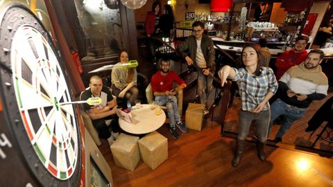 Hace unas semanas tuvo lugar el torneo de dardos, que se disputa anualmente. Este año se juntaron 72 personas y asistieron ciudadanos de Tenerife, País Vasco y de todas las provincias gallegas. «Aínda que houbo gañadores como no resto dos torneos, tiven detalles con todos os participantes, porque o meu premio son os xogadores de todo o ano», relata esta joven. Según cuenta a YES esta profesional, jugar a los dardos es tan adictivo como divertido. Aun así, indica que no es un juego sencillo, que pulir la técnica lleva mucho tiempo y que al final todo se basa en el entrenamiento. «Para aprender a tirar dardos hai que dedicarlle moito tempo ao xogo en si mesmo, como tamén ver a técnica para ir incorporando movementos e estilos», opina. El Minuetto dispone de tres dianas para practicar. Es frecuente entrar en el local y ver a la gente tomando algo y jugando a los dardos. Muchos lo hacen en grupo de amigos; otros en solitario. Pero todos disfrutan.
