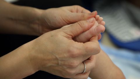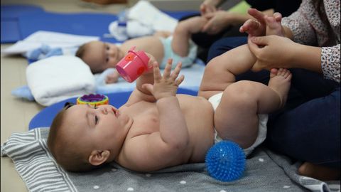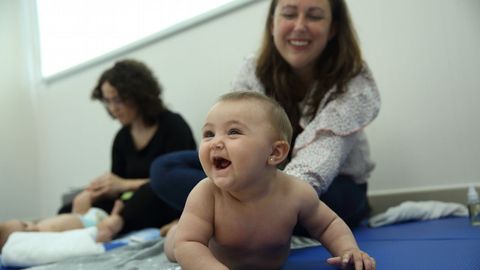 Cuando empiezan a gatear o consiguen darse la vuelta rápidamente realizar el masaje se convierte en todo un reto, aunque apenas sean 10 minutos. Por eso, las matronas recomiendan ir aprovechando las posturas que nos van poniendo en bandeja. Si se ponen a gatear, hay que masajear la espalda, si nos dan una pierna, a por ella... Lo que sí es fundamental es encontrar un lugar cómodo e íntimo que propicie ese diálogo táctil entre ambas partes. Porque si el masaje tiene ventajas para el que lo recibe, también para el que lo da. «Empezamos con una presión suave, porque hay que pensar que es un estímulo nuevo para él, que no ha recibido hasta ahora», le advierte Conchi a Patricia. Aunque son pasos muy superficiales y ligeros el estímulo es suficiente como para que los bebés precisen incorporarlos de manera gradual, y así ser bien tolerados y aceptados por ellos. Después la anima a coger la pierna del pequeño para explicarle los diferentes movimientos que se pueden hacer desde la ingle hasta la planta del pie. Ojo cuando les pasas los dedos por las plantas de los pies. Caramba, sí lo perciben.