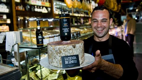 Siempre se dijo que el queso pide vino. O al revés. Es un maridaje eterno. Posiblemente el más perfecto. Pero del queso que les hablo es algo especial. El angelito se bebe una botella de Oporto en diez días. «Una pieza grande, de unos 4 kilos, es lo que tarda en vaciarla. El líquido se va colando poco a poco por los orificios y lo va impregnando todo», comenta Sebastián Pazos, charcutero de La Tienda de Lino, un negocio de productos delicatesen de A Coruña. Dice que los ingleses acostumbran a maridar su famoso Stilton, un azul fantástico, con vinho de Porto, porque «les gusta el toque dulzón que contrasta con la potencia de sabor del queso», explica. Apasionado de su oficio, Sebastián vio por primera vez en una tienda de Inglaterra esta peculiar fusión de productos. «Hablé con un distribuidor importante de quesos y me dijo que él lo había hecho y que el resultado fue bueno», asegura. Me dice que el sábado (por hoy) el Stilton se habrá ventilado la botella de Vintage de 15 años y ya estará listo para su consumo. «Lo vendemos más caro que el que no lleva Oporto, casi el doble, por el trabajo que da y por la calidad del vino que le añadimos. Hace dos meses pusimos a la venta uno similar y se acabó en media hora», asegura.