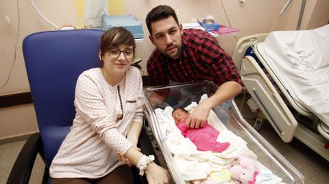 Adela tenía que haber llegado este año, en el 2019; sus padres la esperaban para el día 19 de enero, pero se adelantó. «Quixo vir ao mundo no 2018», me cuenta su padre, Miguel, que está como loco con su primera hija. Adela nació el 30 de diciembre a la una y media del mediodía y fue el último bebé que vino al mundo en Monforte. «A estes nenos habería que darlles un premio, sempre se fala dos do día 1 de xaneiro, pero pechar o ano tamén ten o seu aquel, non?», reclama su padre. Al parecer, aunque en la zona no nacen muchos niños, los partos previstos para mediados de este mes se adelantaron casi todos. «Non sabemos por que, pero a maioría quixeron chegar uns días antes», dice este padre primerizo. A su lado, Cristina, la madre de Adela, está encantada por esta sorpresa, no solo porque la niña les deja dormir, que también, sino por el hecho de que el nacimiento tan inesperado se produjo sin ningún tipo de complicación: «Para min foi un embarazo e un parto de libro; moitísimo mellor que Adela non avisara, así non deu tempo a nada. Cando cheguei ao hospital xa estaba moi dilatada».