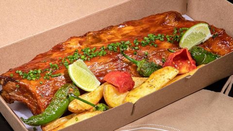 Para Xosé Cannas el covid-19 ha hecho con el formato delivery en los restaurantes lo que pasó con la venta on-line en el comercio: «Dinamizar e apuntalar o que xa se vía que era tendenza». El riesgo, apunta el pontevedrés, es asumirlo desde la improvisación. «Non se trata de meter un prato nunha caixa. Hai que cambiar o chip. Cada prato hai que repensalo para que sexa consumido nun tempo diferente e cun traxecto en moto». De ahí que su apuesta desde Ultramar no sea la de «super cenas» sino «algo sinxelo pero rico». Cannas aprovechó para sacar del baúl de los recuerdos platos que estuvieron en sus cartas y que pensaba que «cun restyling» podían funcionar. Y vaya si funcionan. Ahí están en el top de los más demandados el Pollo TSO, además del ya mítico bocadillo de calamares con ajo negro asado y de las costillas de cerdo en la barbacoa (en la foto).