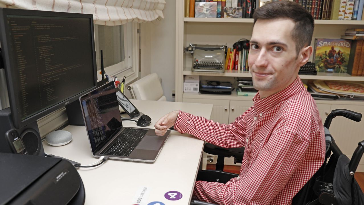 Ya una vez en materia, asegura que lo más complicado era hacer los exámenes. No ya tanto por su contenido como por las limitaciones. «El de los exámenes sí que era un tema más complicado, porque al principio había más materia de Matemáticas y de Física y no se podían hacer a través del ordenador o era muy lento, así que los hacía dictando a un profesor o a alguien. Eran unos exámenes eternos. Imagínate lo que es dictar matemáticas, no solo mantener memorizado lo que vas haciendo, sino también comprobando que esa persona ponía lo que quería y a la vez desarrollar los problemas», indica Javier, que en el teclado escribe tecla a tecla con el meñique de su mano derecha. «Tengo mil truquitos», bromea.