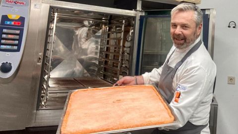 Para el relleno se necesitan 5 kilos de cebollas cortadas muy finas, un kilo de pimiento rojo, vino blanco y pimentón dulce: «Hay que dejar pochar la cebolla y el pimiento. Tiene que estar muy bien pochada. Es fundamental, que casi se deshaga. Echarle sal y a fuego lento ir revolviendo. Cuando esté medio pochado se le echa el vino blanco y el pimentón. Y sigues revolviendo. Una vez listo, hay que dejarlo escurrir para eliminar el exceso de agua de la cebolla y no cargarte la masa. La masa admite grasa, pero no agua». Cuando la masa ha crecido, se estira y ya pones el relleno de la cebolla y la carne cortada muy picada y echas un chorro de aceite de girasol por arriba. La tapas. Pones los agujeros para que no se rompa y la metes al horno a 180 grados 45 minutos. La sacas, pintas con huevo y lo metes 15 minutos más a 200 grados». Y listo. Para chuparse los dedos.