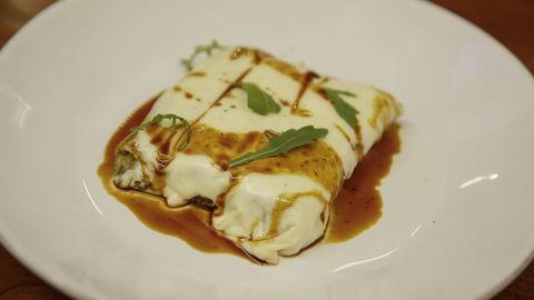 Tarrío recomienda no complicarse la vida haciendo la masa del canelón, porque algunas cadenas alimentarias ya los venden en tubos, con lo que solo tendrás que rellenarlos: «Haz de media cuatro canelones por ración y colócalos en una bandeja al horno con una base de salsa de tomate. Y se cubren con la bechamel».