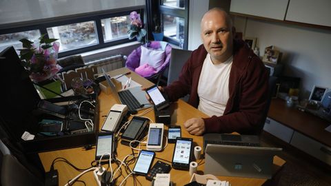 Con un dispositivo digno de ver en el salón, entre pantallas y dispositivos TPV, el informático asegura que no le satura el hecho de que su trabajo y parte de su ocio se entremezclen en el mismo espacio. Tampoco le pesa todo este tiempo de semiencierro con la familia, sin cambiar de escenario para trabajar y a pesar de todas las restricciones de los últimos meses para la reunión con no convivientes. «No me satura en absoluto. La verdad es que estoy muy a gusto con mi mujer. Ella trabaja en el comercio, por lo que lo hace de forma presencial. Nos vemos para comer y después, cada uno tiene su espacio. Yo leo, ella ve sus series y los niños ya son mayores e independientes, con sus deberes y demás. Si fuesen pequeños la situación sí que cambiaría, porque haría falta contratar a alguien para atenderlos para poder trabajar. Además, salgo a hacer deporte tres veces por semana y he sido siempre muy casero», dice Ángel, que no obstante subraya que cuando su empresa lo reclame, acudirá igualmente contento. «Yo no voy a solicitar quedarme en casa permanentemente, y considero que las decisiones de las empresas hay que respetarlas al máximo. ¿Pero si me dan la opción? Me quedo en casa encantado de la vida. ¿Que hay que volver? Pues también», zanja.