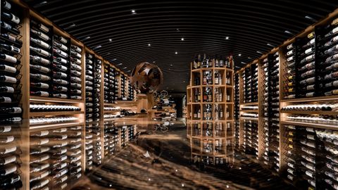 «Con la apertura de la nueva bodega de Ambivium conseguimos cerrar el círculo de una experiencia inmersiva total en torno al vino y su cultura. En este espacio recogemos y compartimos una parte del alma de todos esos productores que han conseguido emocionarnos a través de botellas irrepetibles, e incluso disfrutaremos de algunas elaboraciones que solo podremos probar aquí», cuenta Pedro Ruiz. En un edificio situado entre viñedos y con el castillo de Peñafiel de fondo, diseño del arquitecto Francisco Zaparaín, se encuentra el comedor en el que una enorme barra ovalada, ocupa el centro, como muestra de que el vino es protagonista. Ahí es donde se preparan las botellas que saldrán a las distintas mesas que se encuentran alrededor de este espacio.