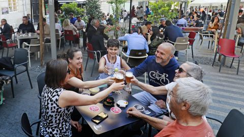 Desde allí se atisba el Concello y subiendo hacia él, muy cerca, está la Ronda de don Bosco, que es la penúltima nueva plaza. Estrenada en el 2021 tras una polémica reforma que supuso la desaparición de tres cedros del Líbano de gran porte y un jardín con suelo de tierra para disgusto de los vecinos, los hosteleros y su creciente clientela disfrutan ahora de sus beneficios. Kiko Castiñeiras, responsable de uno de los bares más veteranos, La Juakina, que ya cumplió 23 años, opina que al final todos han salido ganando, aunque reconoce que un poco más de verde no vendría mal. «Las glicinias no terminan de prender, y sería genial que creciesen», dice respecto a la pérgola que unifica a todos los locales de la calle sobre un entarimado pétreo con escalones que es el que les da una nueva perspectiva. Ahora los bares de la Ronda ya son como una terraza continua en la que se difumina dónde empieza una y dónde acaba la siguiente. «La gente lo que quiere es encontrar sitio», dicen allí. La oferta varía poco de unos a otros. Excepto el fantástico y muy frecuentado restaurante Primavera, los demás ofrecen bebidas frías y calientes, tapas y algo de picoteo en un ambiente algo canallita, urbano, muy Malasaña, si vale el símil.
