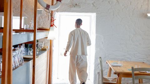 Cada reserva en Loxe incluye dos mesas: una dentro, para el plato principal y otra en la terraza para el aperitivo y el postre. En esta taberna marinera de Carril, consideran que el paseo también es parte de la experiencia. «Todo comienza y termina en el mar», señalan.