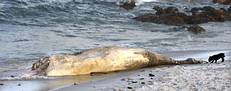 El mamífero, de seis metros de largo, fue encontrado en la playa esta mañana, aunque probablemente llevaba varios días muerto en el agua.