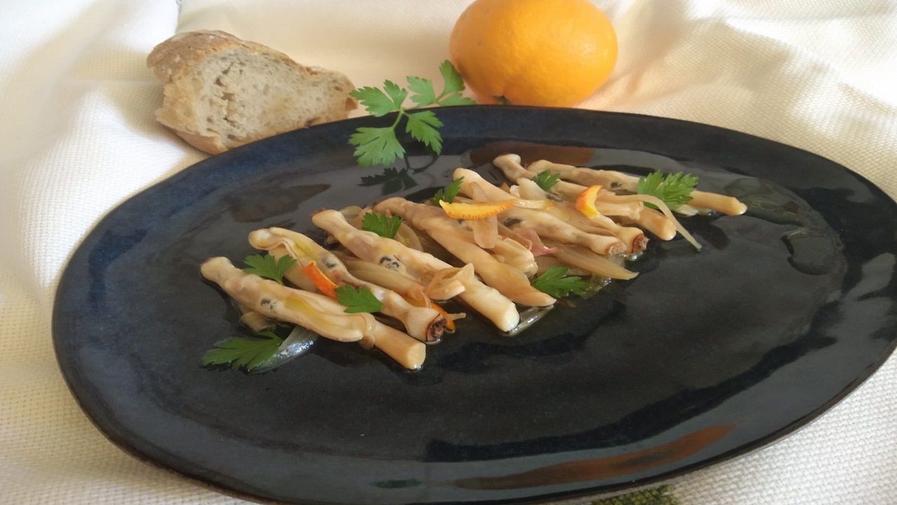Con cuidado y con la ayuda de una puntilla separamos la carne de las navajas de la concha y reservamos.